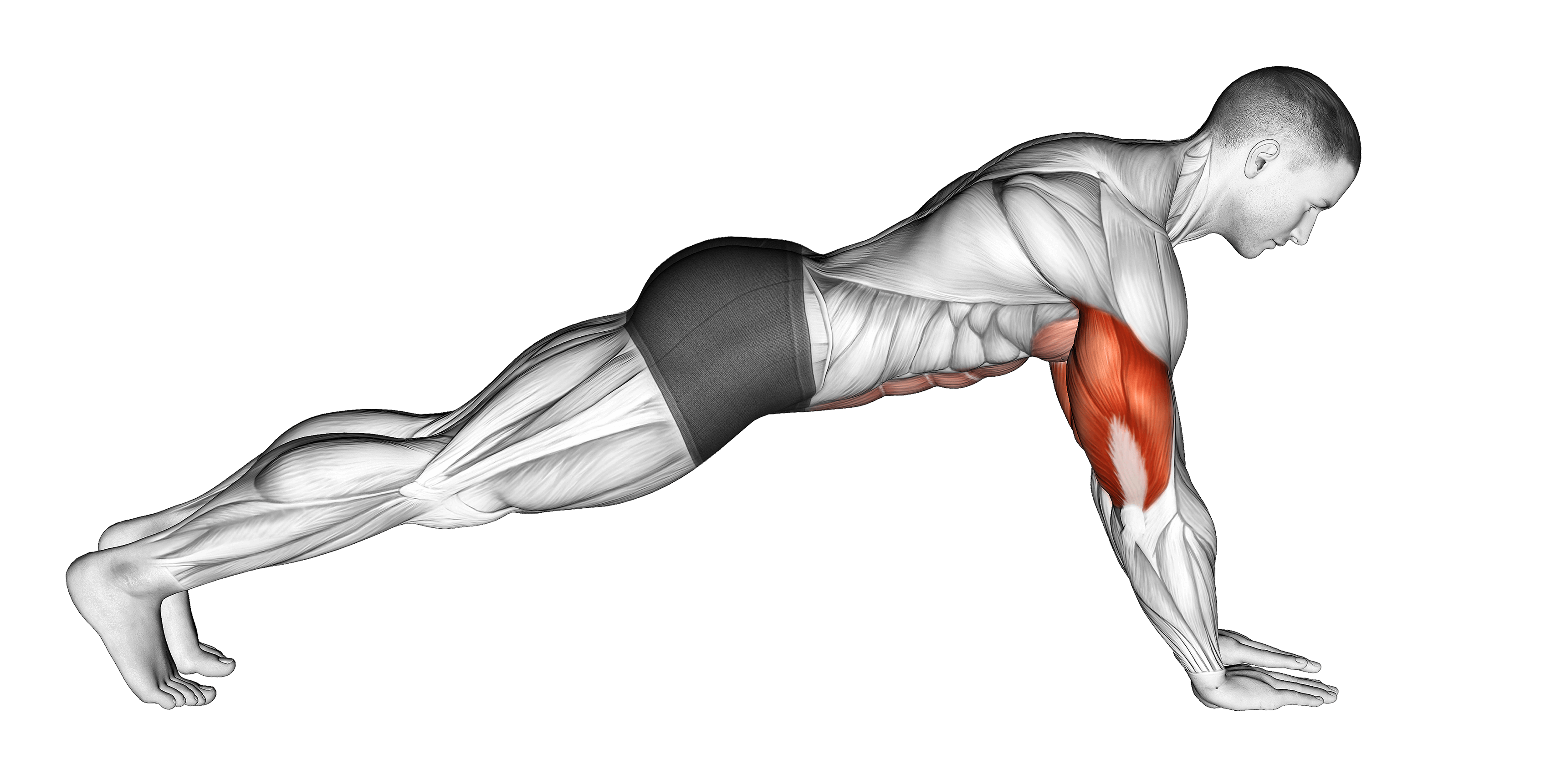 Вторичные мышцы и стабилизаторы: Другие мышцы, работающие во вторую очередь, — это предплечья и передняя зубчатая мышца. В качестве стабилизаторов используются мышцы живота.