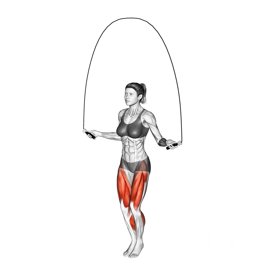 Как выполнять: Встаньте прямо, держа оба конца скакалки в руках. Вращая скакалку по дуге над головой, просто перепрыгивайте через нее, когда она приближается к вашим ногам.