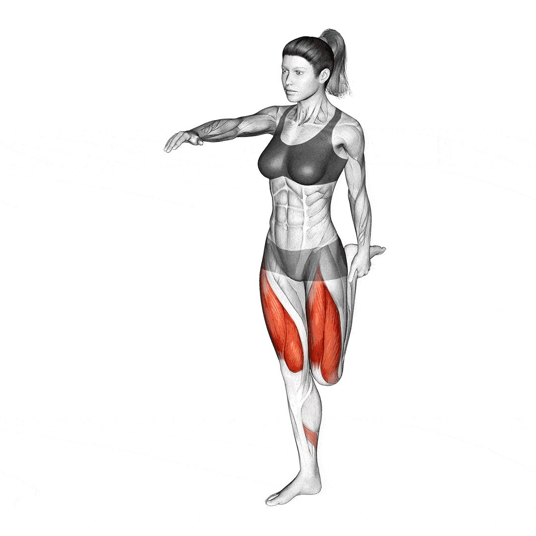 Суть: поднятая нога согнута назад и удерживается рукой.