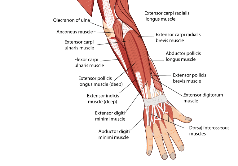 Разгибатели (Extensors). Расположены на внешней стороне предплечья.